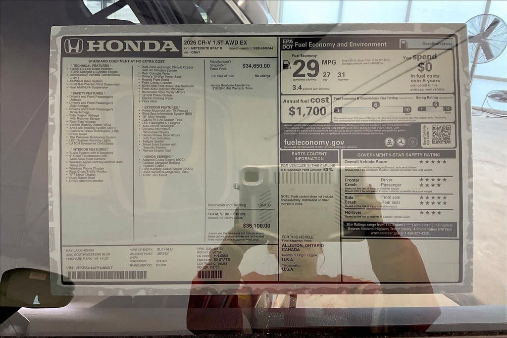 Meteorite Gray Metallic 2026 Honda CR-V EX AWD CVT 1.5L I4 DOHC 16V