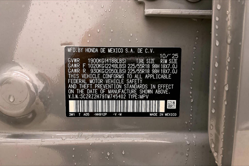 Urban Gray Pearl 2026 Honda HR-V EX-L AWD CVT 2.0L I4 DOHC 16V i-VTEC