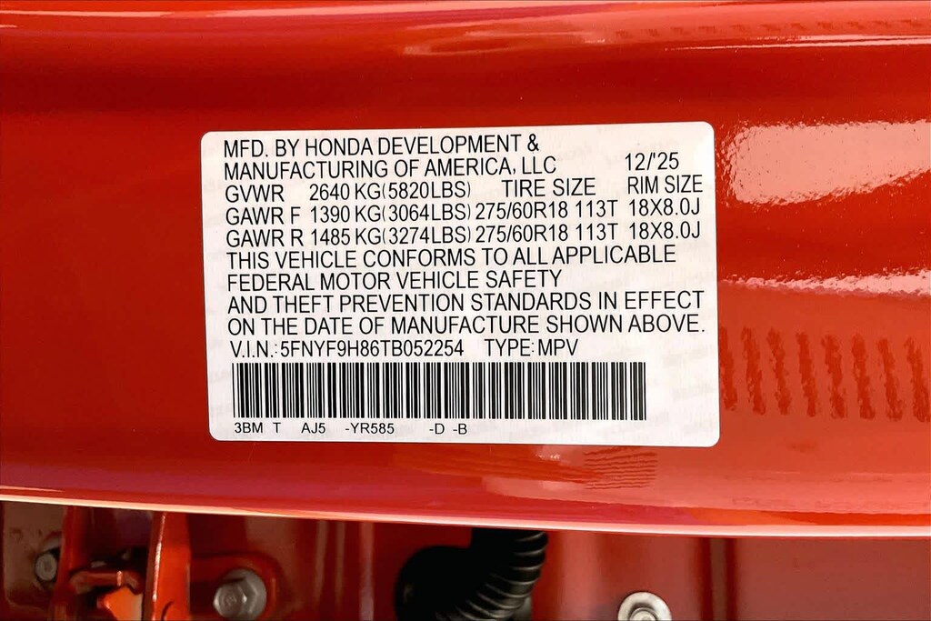 - 5FNYF9H86TB052254